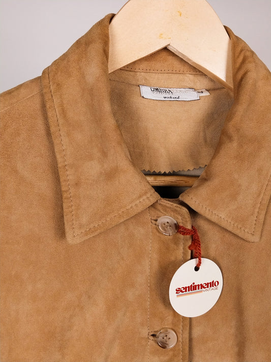 Camicia/giacca vintage in pelle scamosciata color cammello