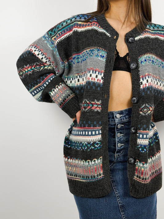 Cardigan Vintage Grigio a Fantasia Geometrica