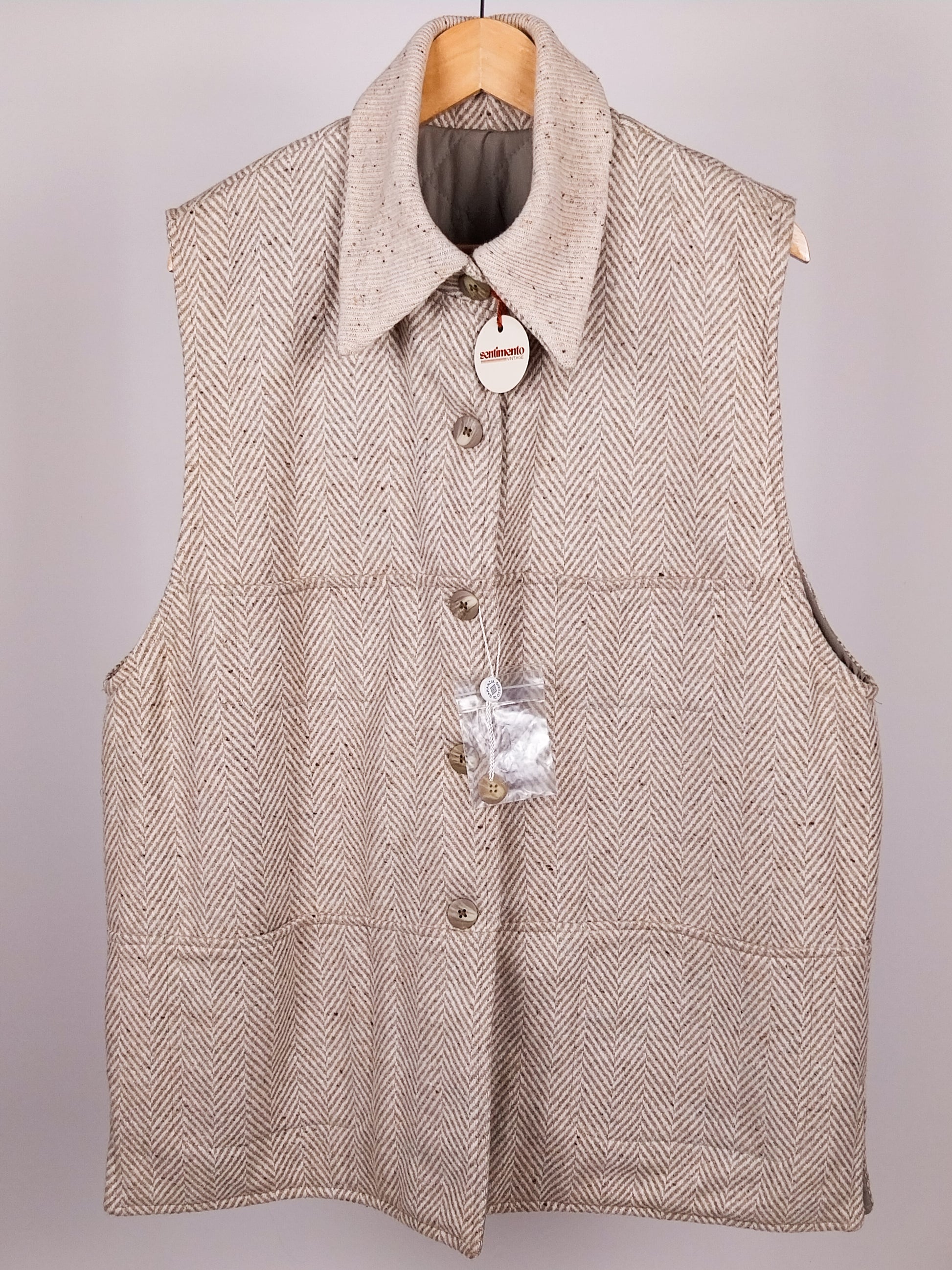 Gilet Vintage Double Face Trapuntato Beige – Lana Spigata