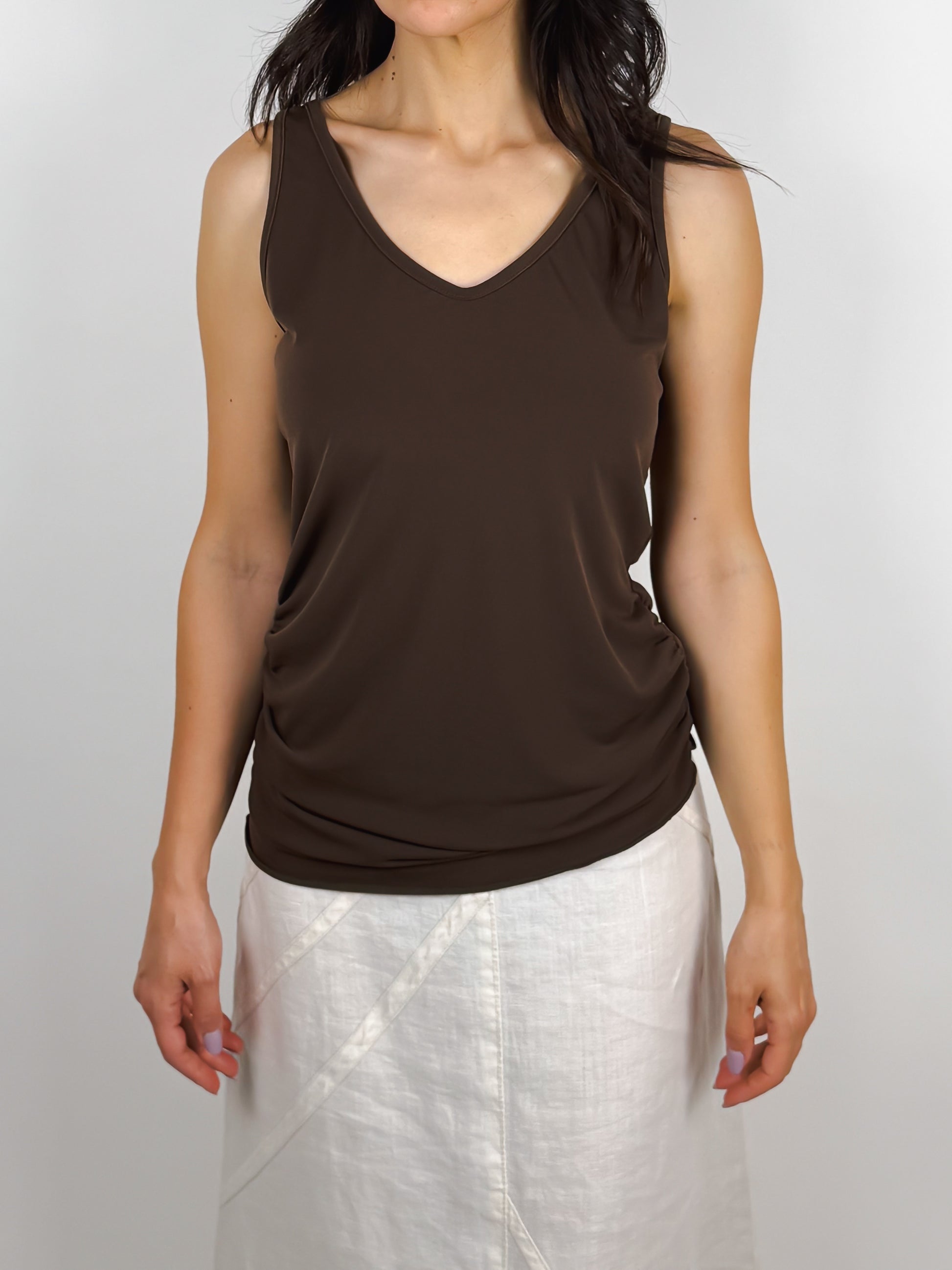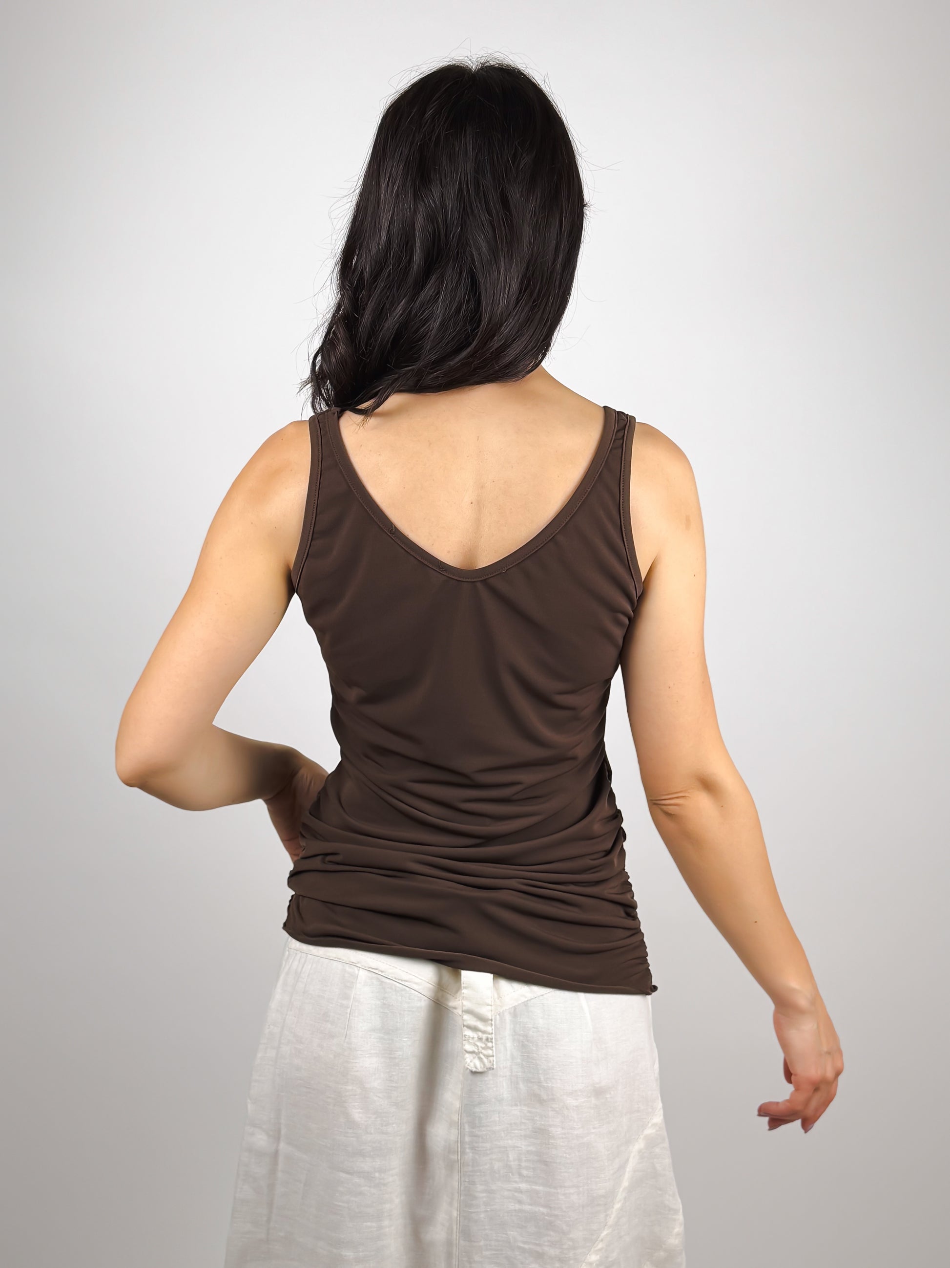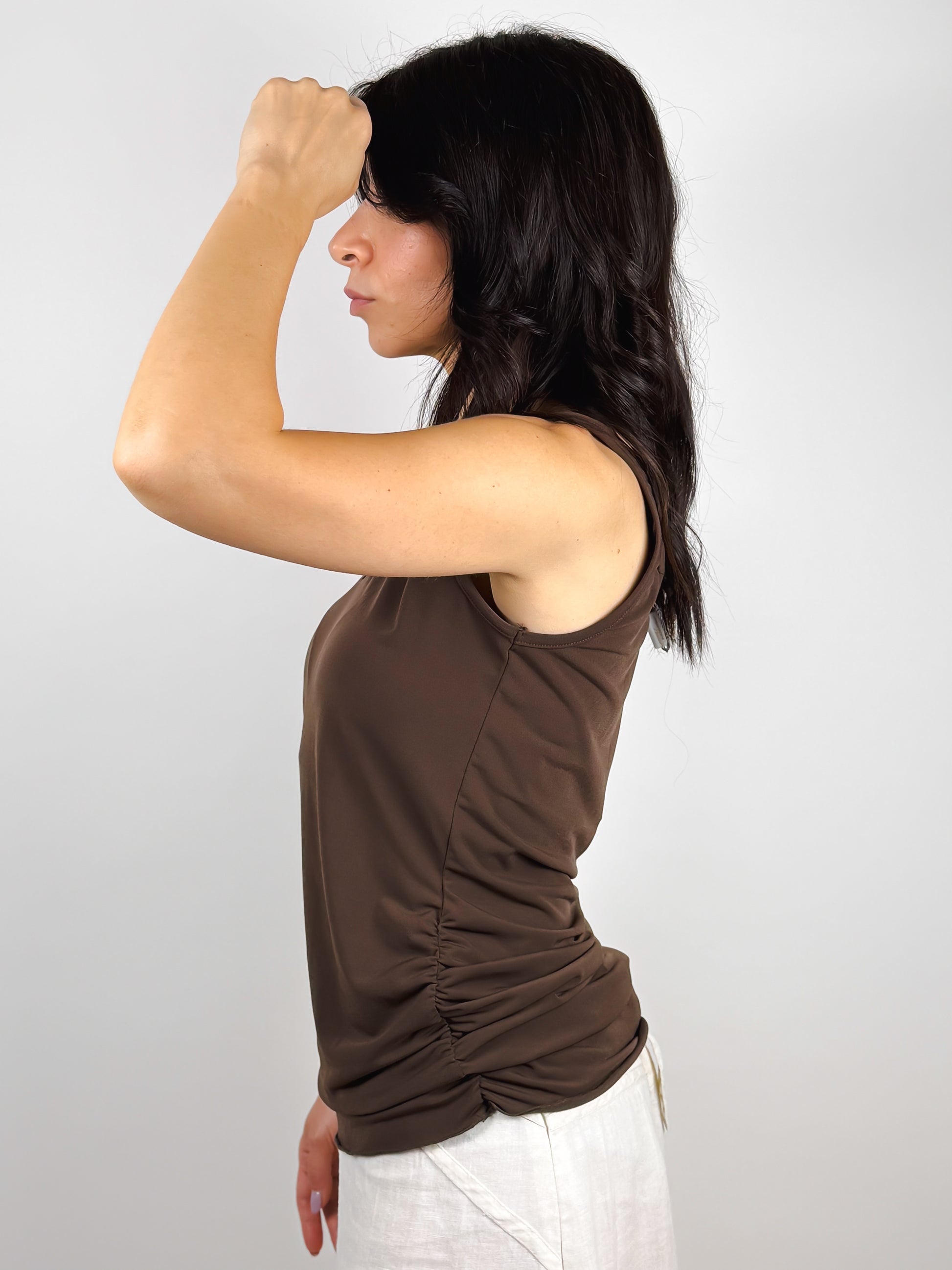 Top vintage marrone firmato Mantani - Made in Italy. Databile ai primi anni 2000. Realizzato in viscosa morbida e di alta qualità, ideale per la stagione estiva..
