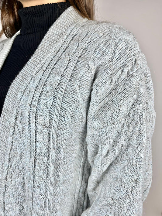 Cardigan Vintage Lana Vergine Grigio Donna Made in Italy