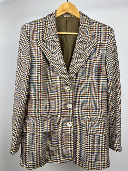 Blazer Vintage Donna Lana Quadri Beige Anni '90