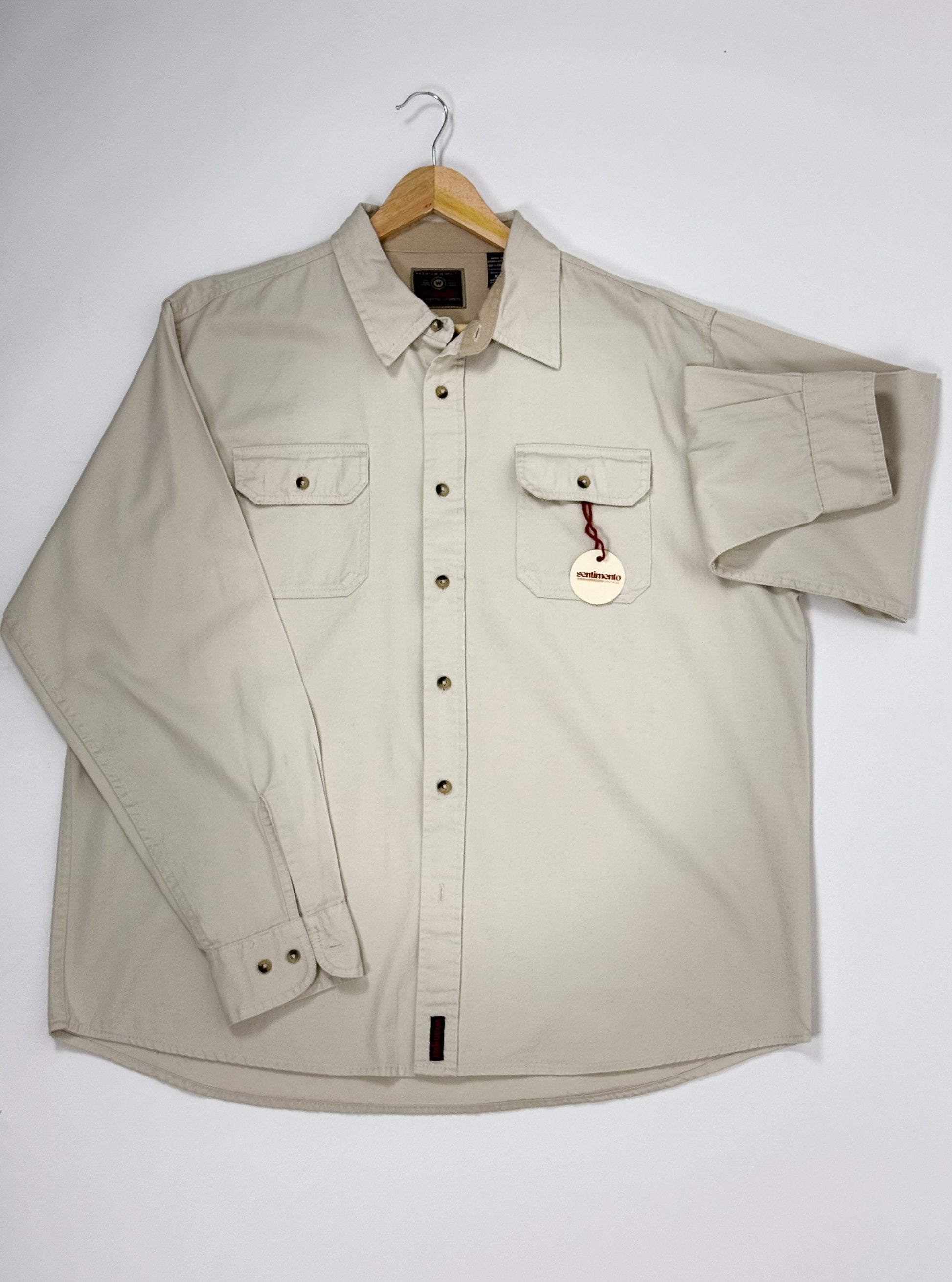 Chemise en coton beige Wrangler années 90. Manches longues, fermeture boutonnée sur le devant et deux poches poitrine.