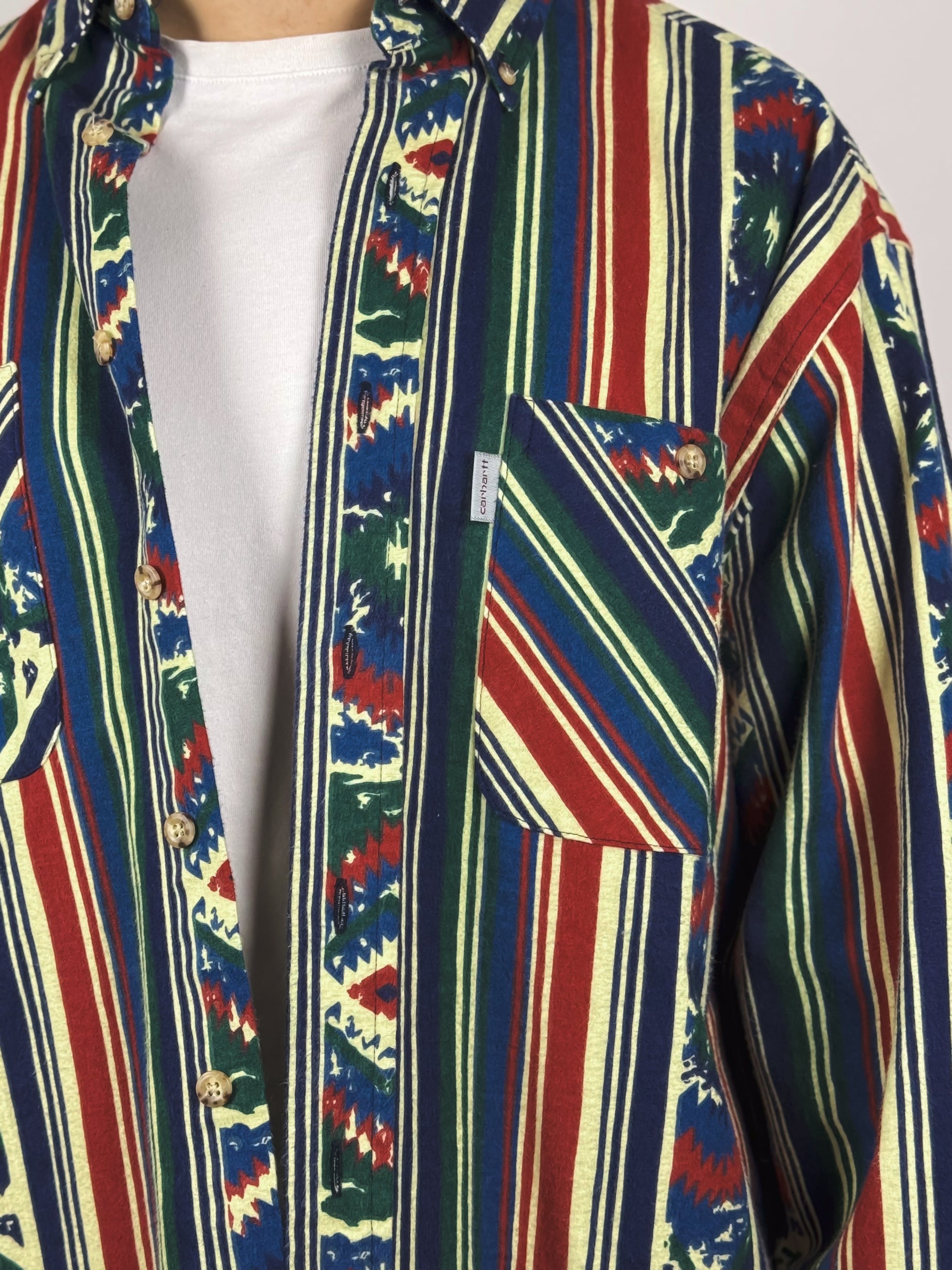 Chemise Carhartt en flanelle de coton chaude des années 90. Fermeture à bouton classique et deux poches à rabat latérales.