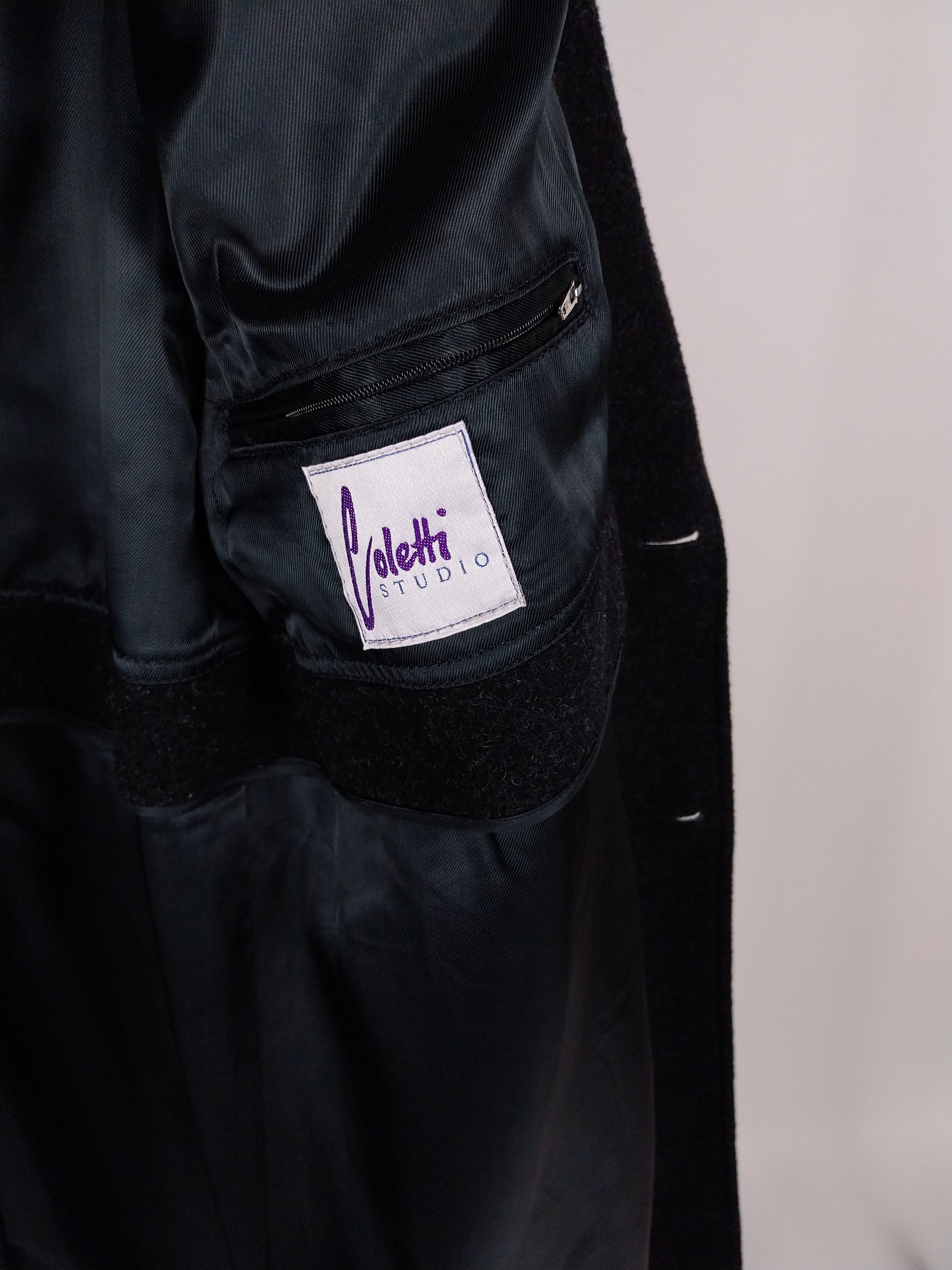 Raffinato cappotto vintage lungo, realizzato in morbida lana dal colore grigio antracite con una texture leggermente melangiata. Modello maschile, ma vestibilità unisex. Presenta una linea classica e senza tempo, perfetta per chi ama un’estetica elegante e minimalista.
