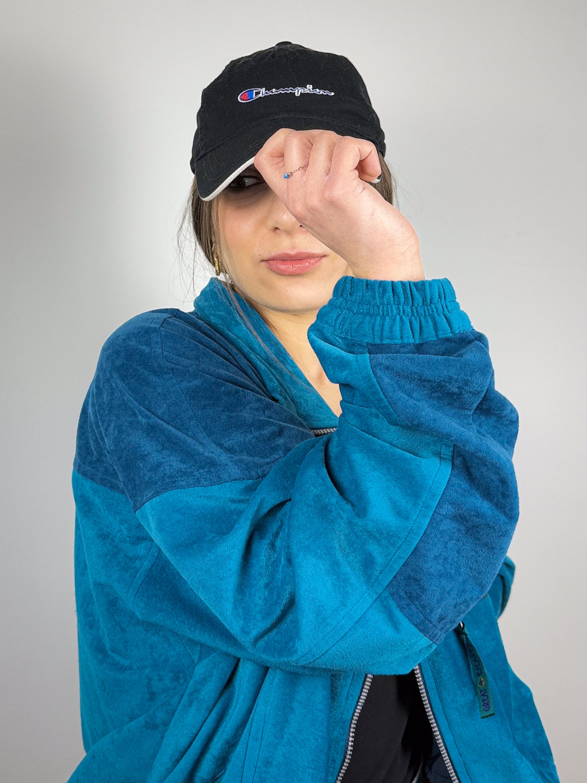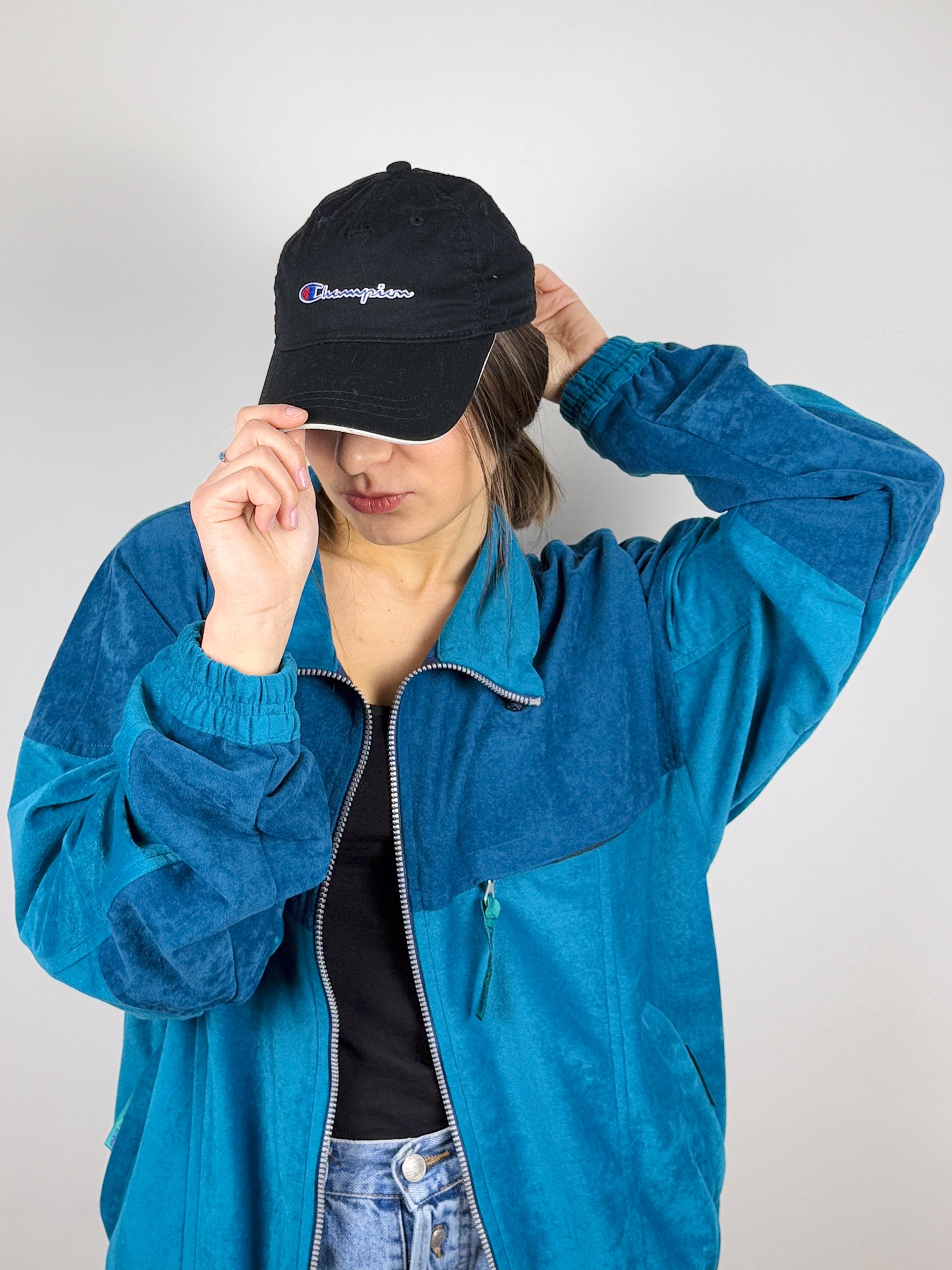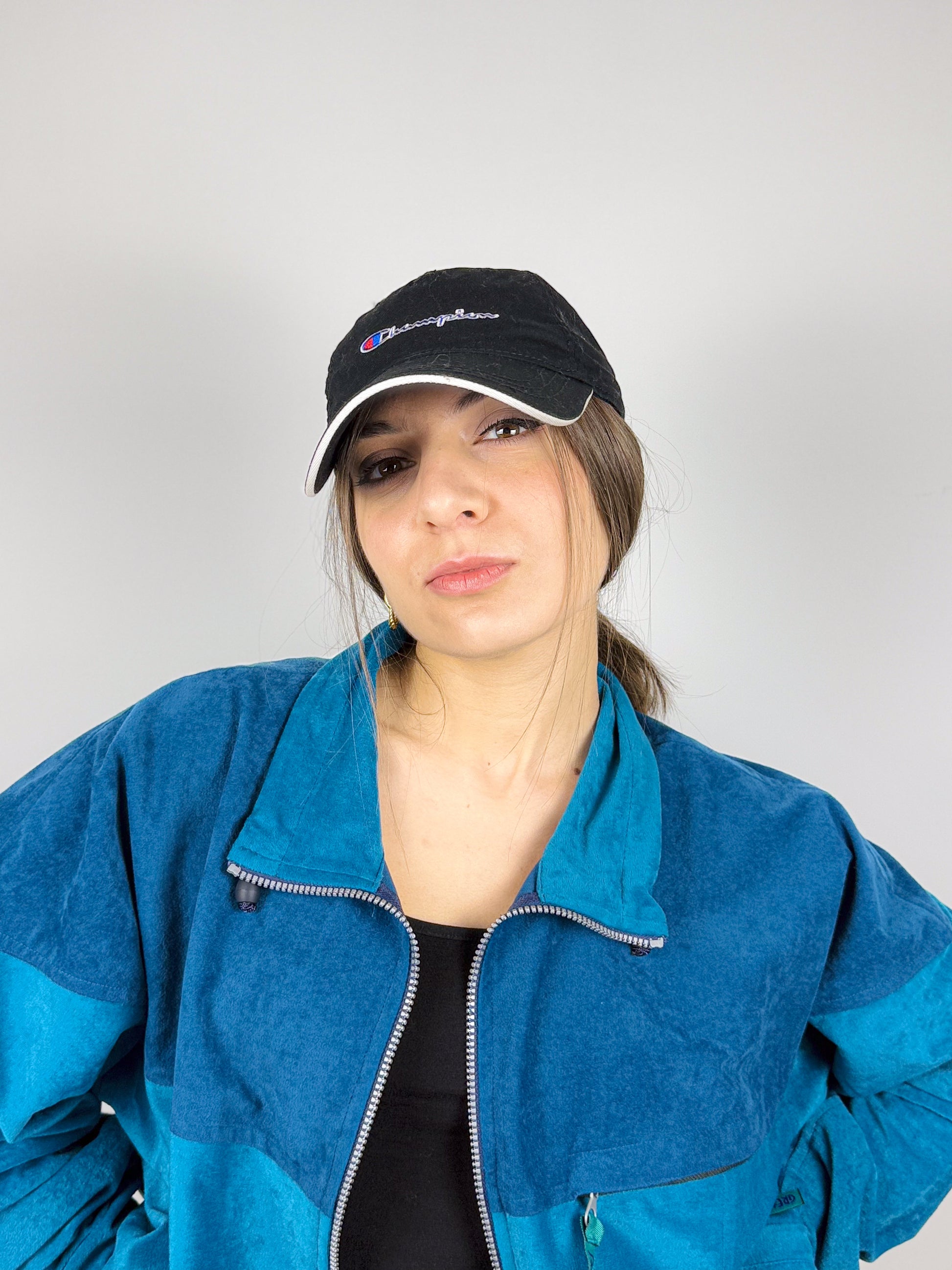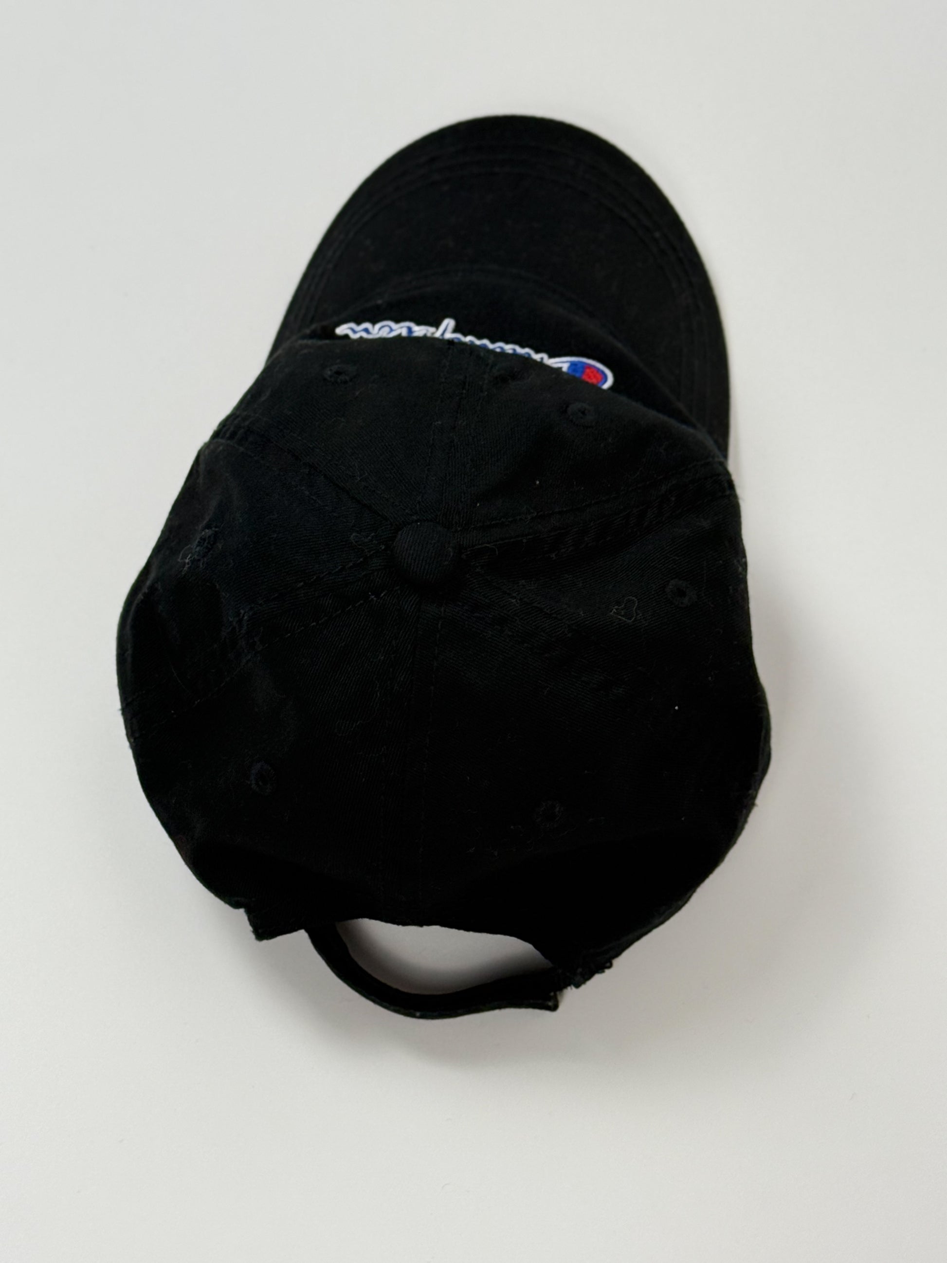 Classico berretto con visiera Champion, nero con dettagli in bianco. Logo ricamato, regolabile sul retro.