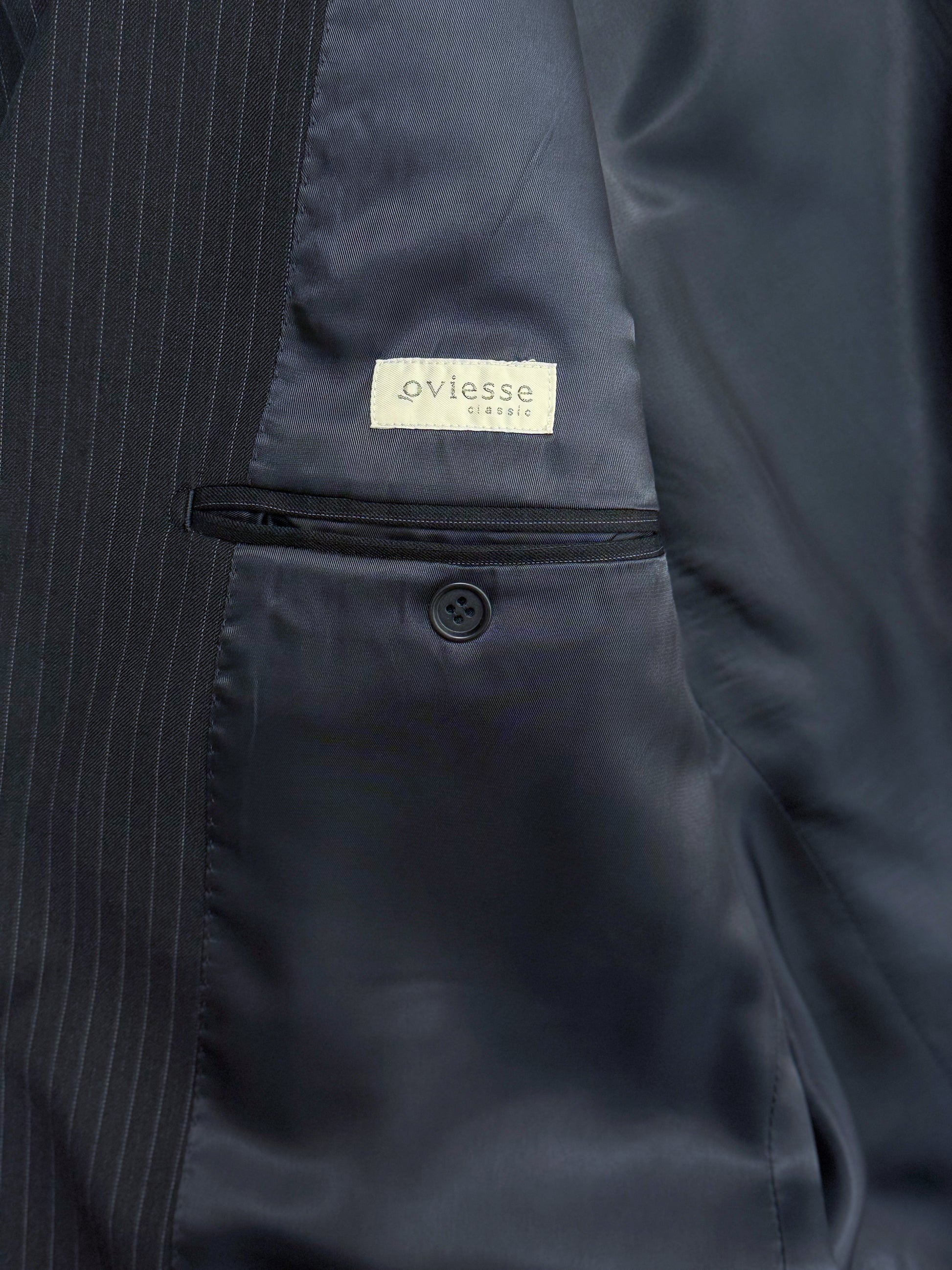 Classico blazer maschile gessato Oviesse vintage. Tessuto fresco e leggero, adatto alla primavera/estate. Chiusura monopetto con tre bottoni, taschino sul lato sinistro del petto e due tasche sul fondo. Spalline imbottite e spacco posteriore.