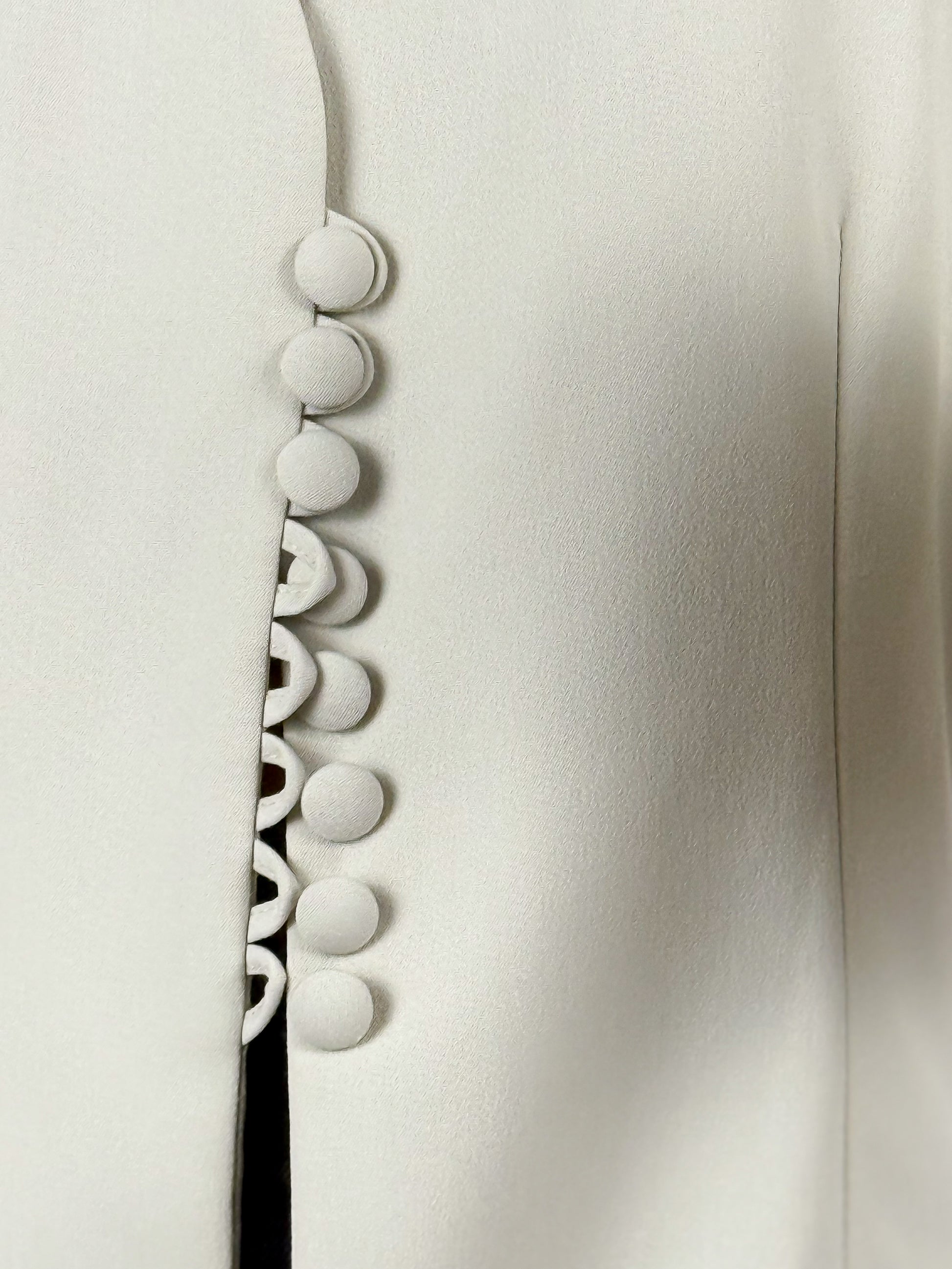 Blazer vintage da donna panna con scollo a V e una fila di bottoni sul davanti. Le spalline sono strutturate, e il taglio è lungo, arrivando fin sotto i fianchi. Qualità eccellente, brand italiano Sportmax, made in Italy