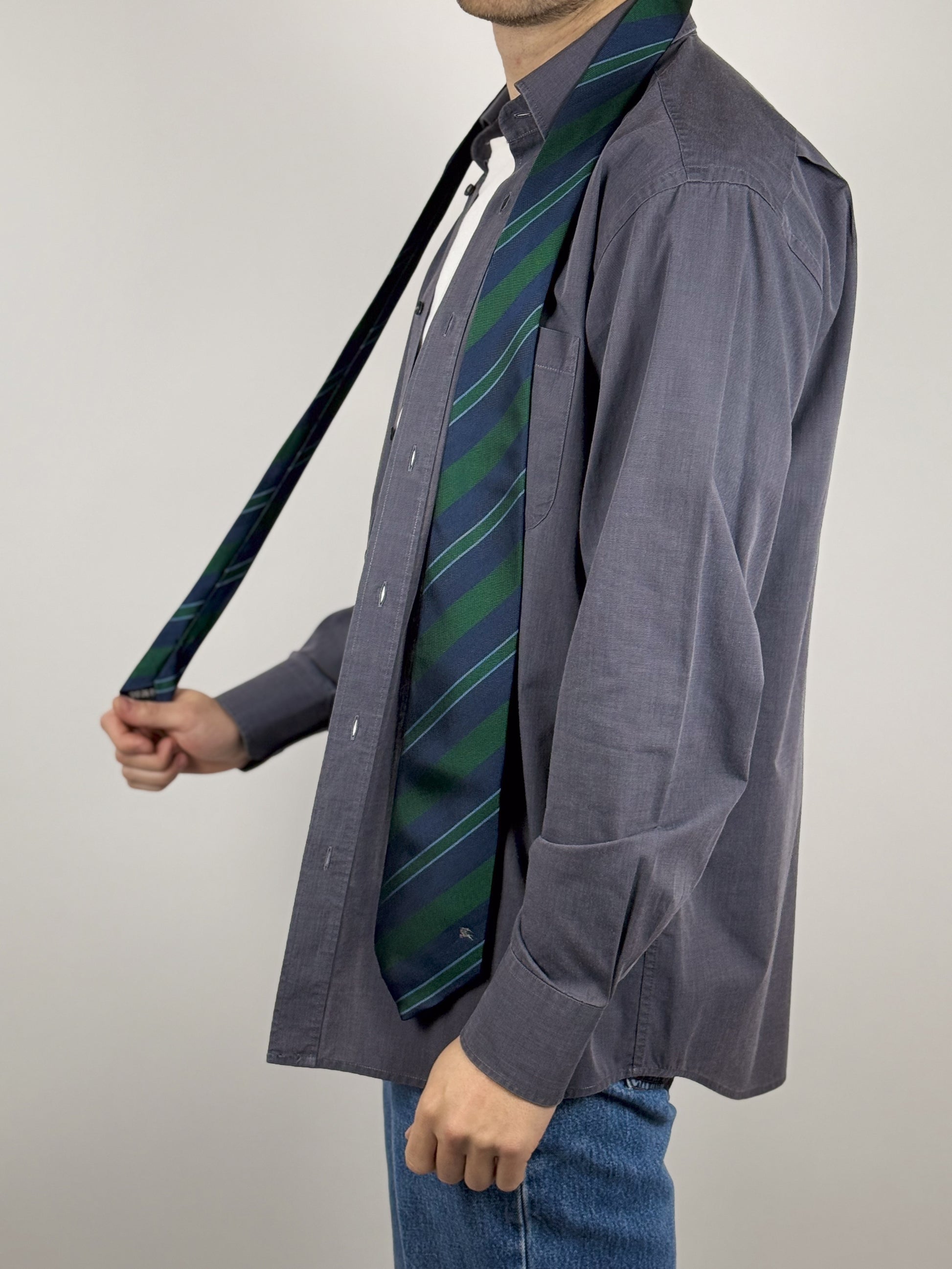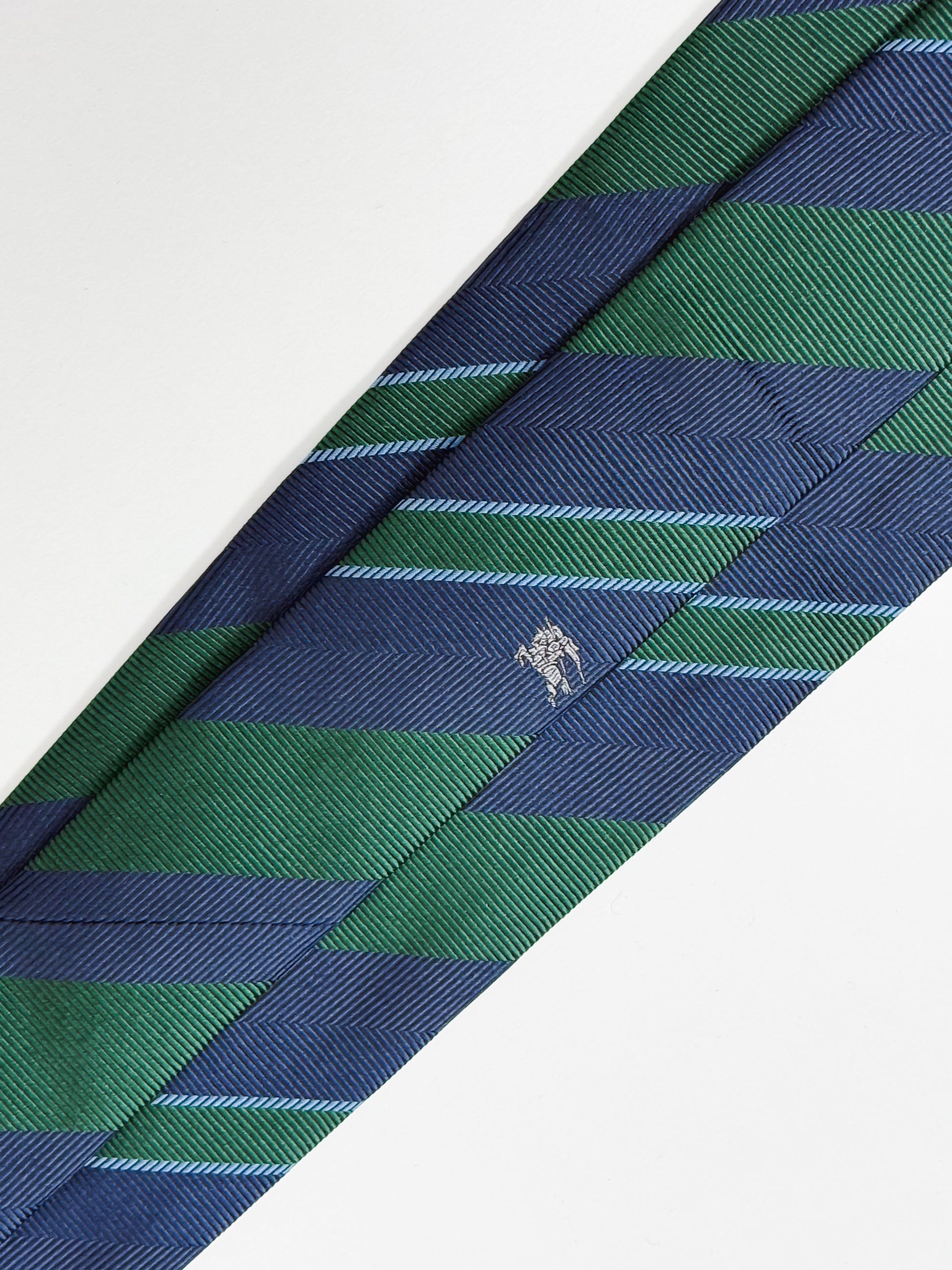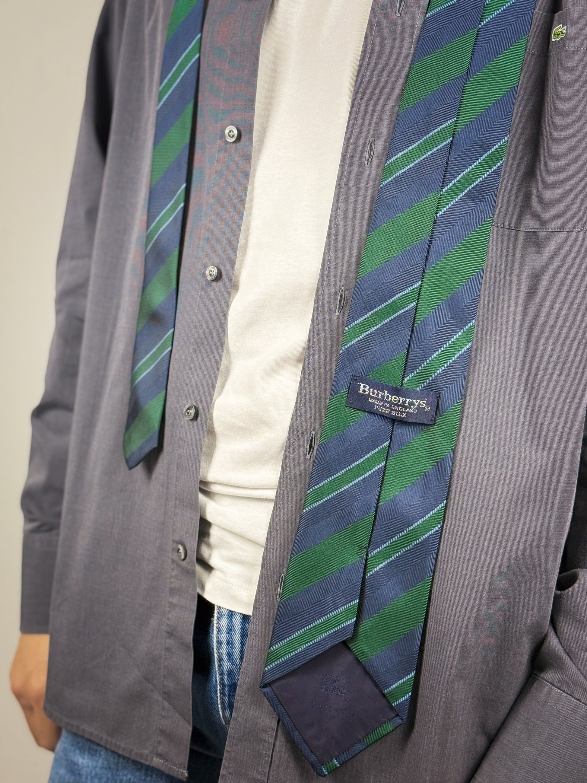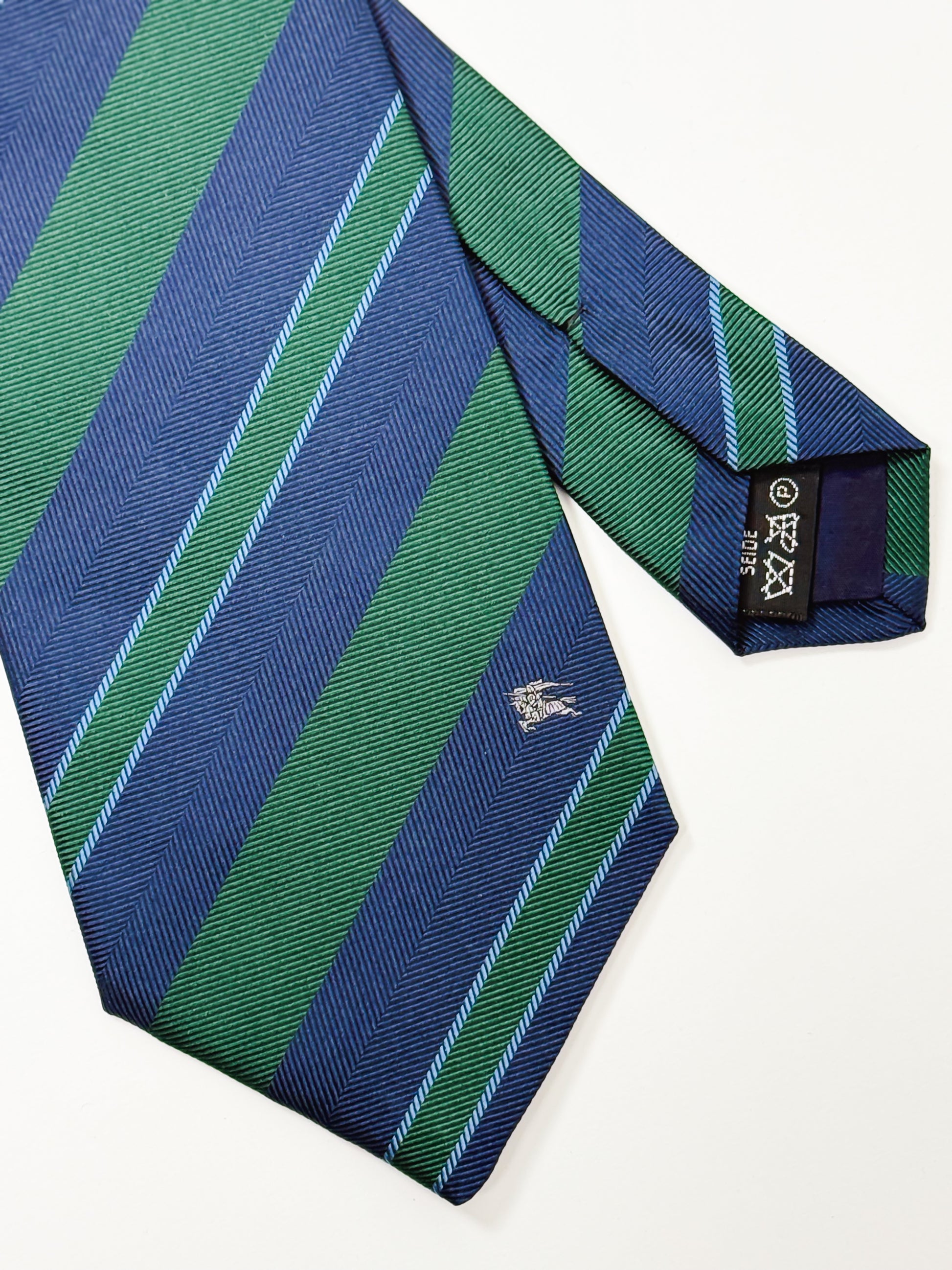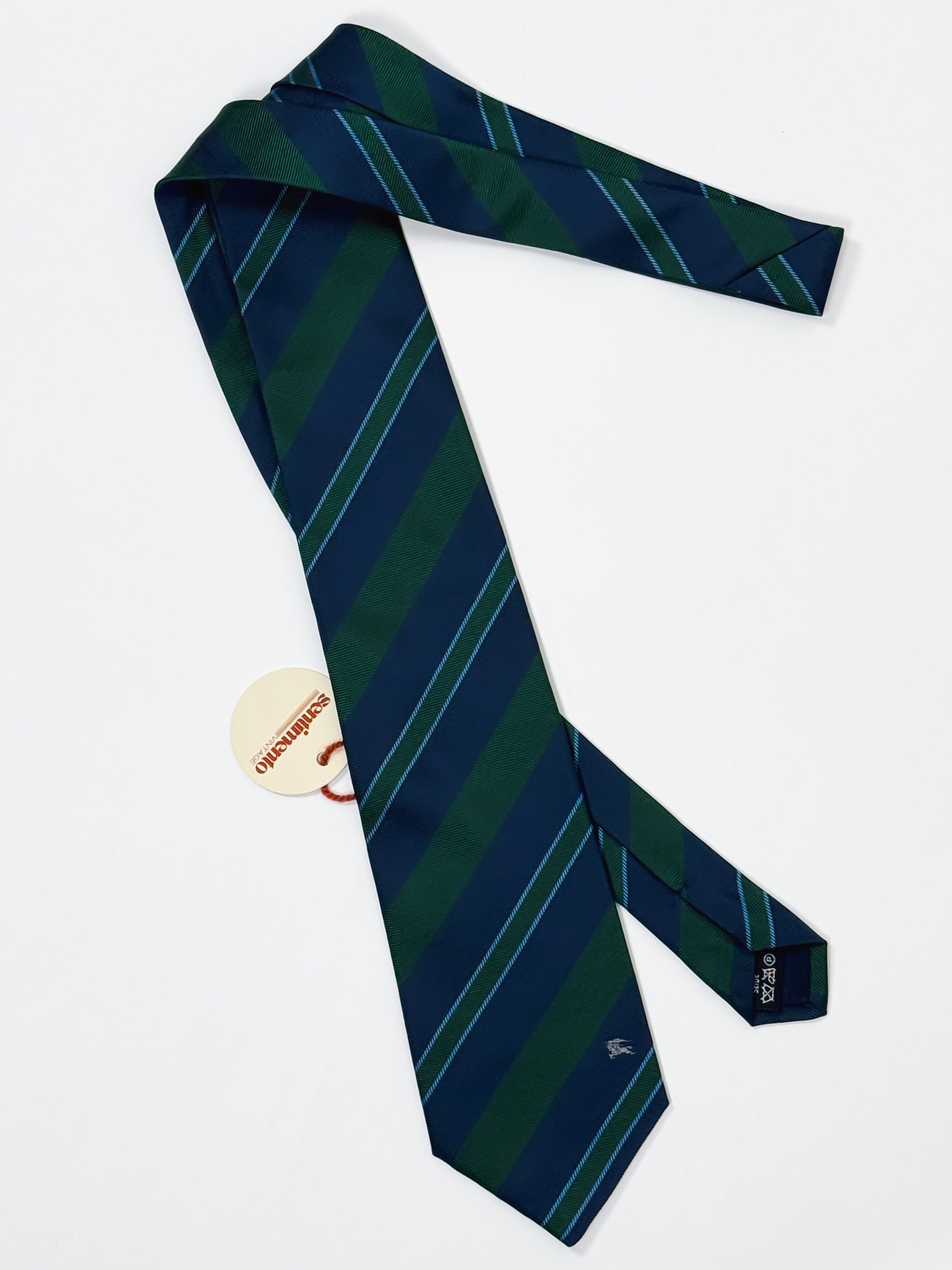 Cravatta regimental verde e blu, Burberrys anni ‘90, Made in England, con logo sia sulla parte anteriore che sul retro