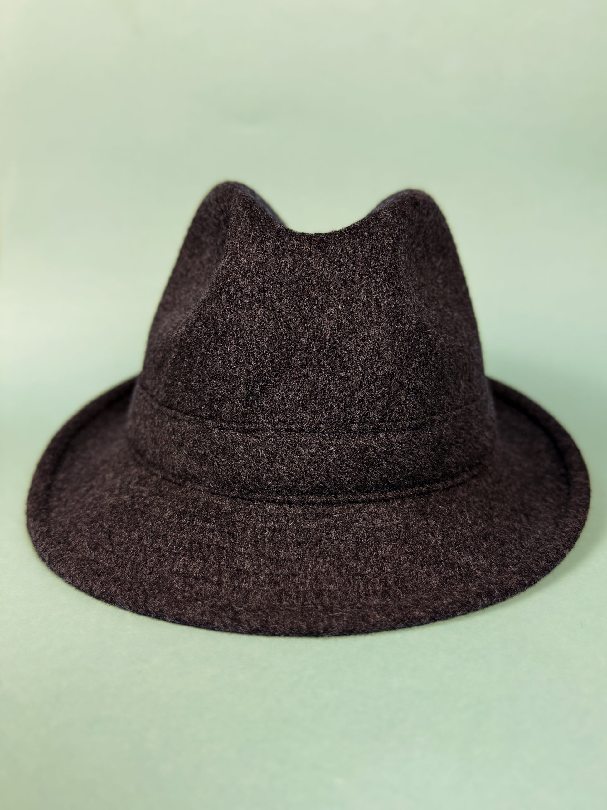 Fedora Rein Haar vintage in lana marrone. Particolare cordoncino che segue l’intera circonferenza.