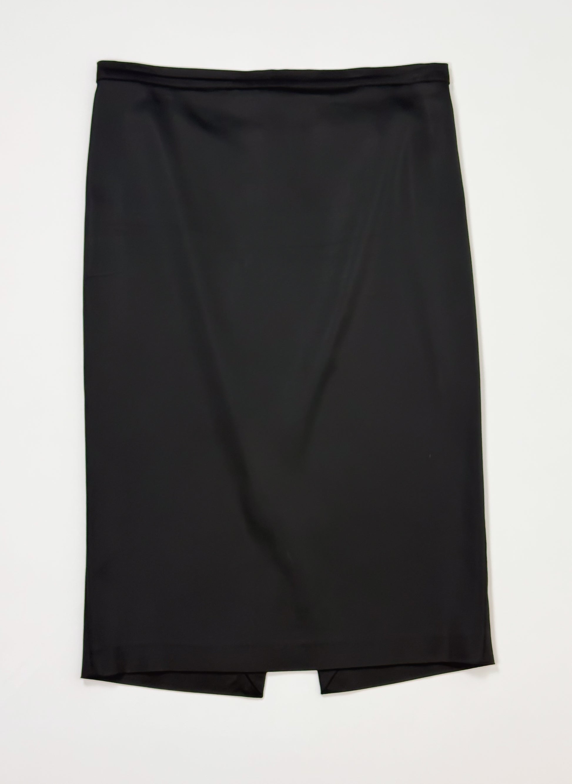 Elegante gonna a tubino in raso nero e spesso, dal design minimal e intramontabile tipico delle collezioni Dolce & Gabbana dei primi anni 2000.
