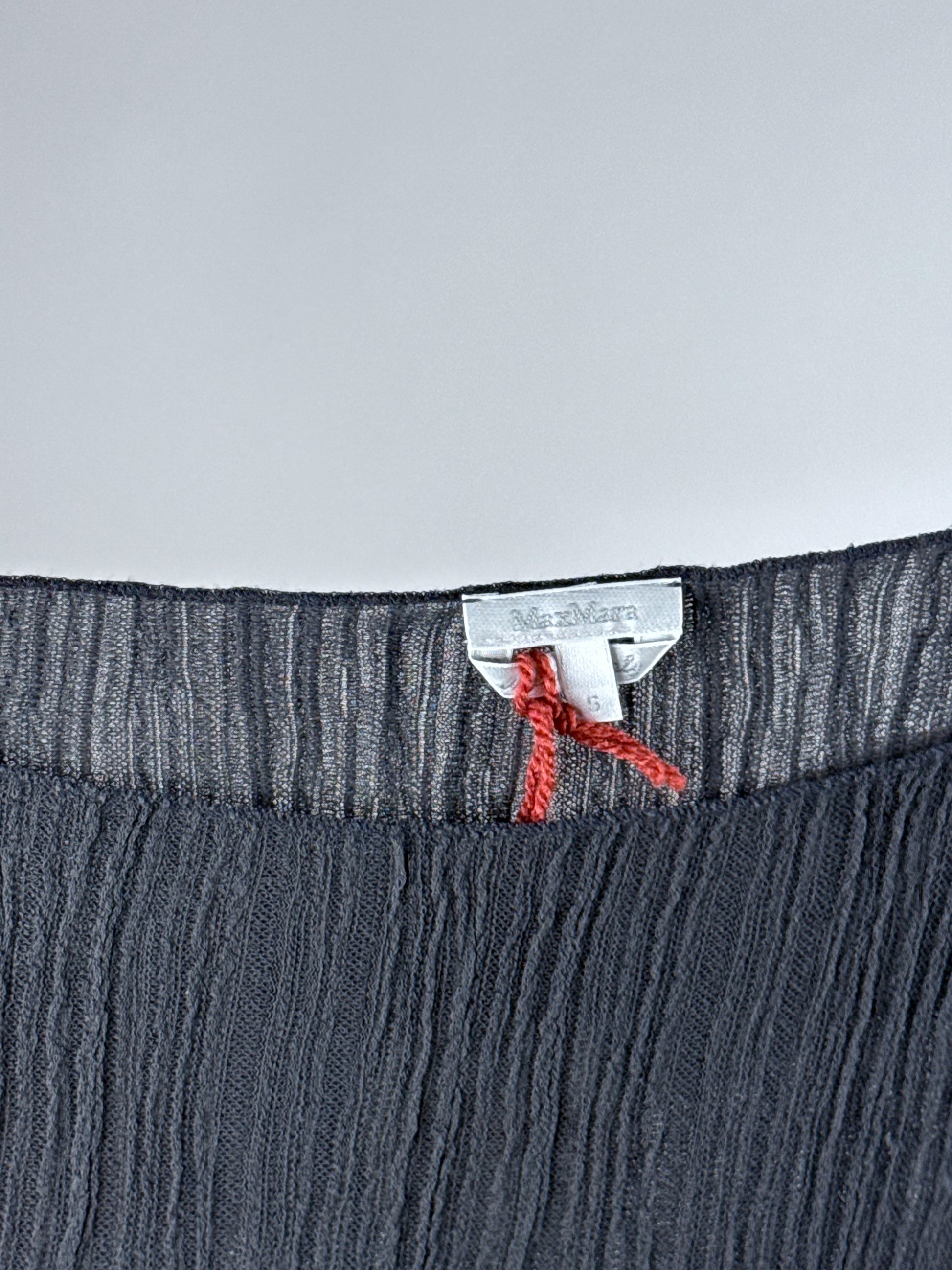Maglia vintage firmata Max Mara in tessuto leggero e semitrasparente. Scollo a barca e vestibilità lineare. Made in Italy.