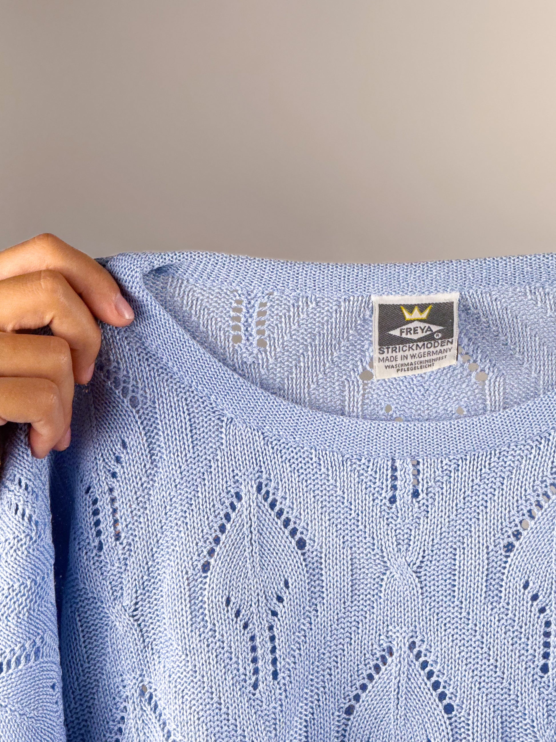 Maglioncino Vintage Traforato Celeste - Made in West Germany Anni '80