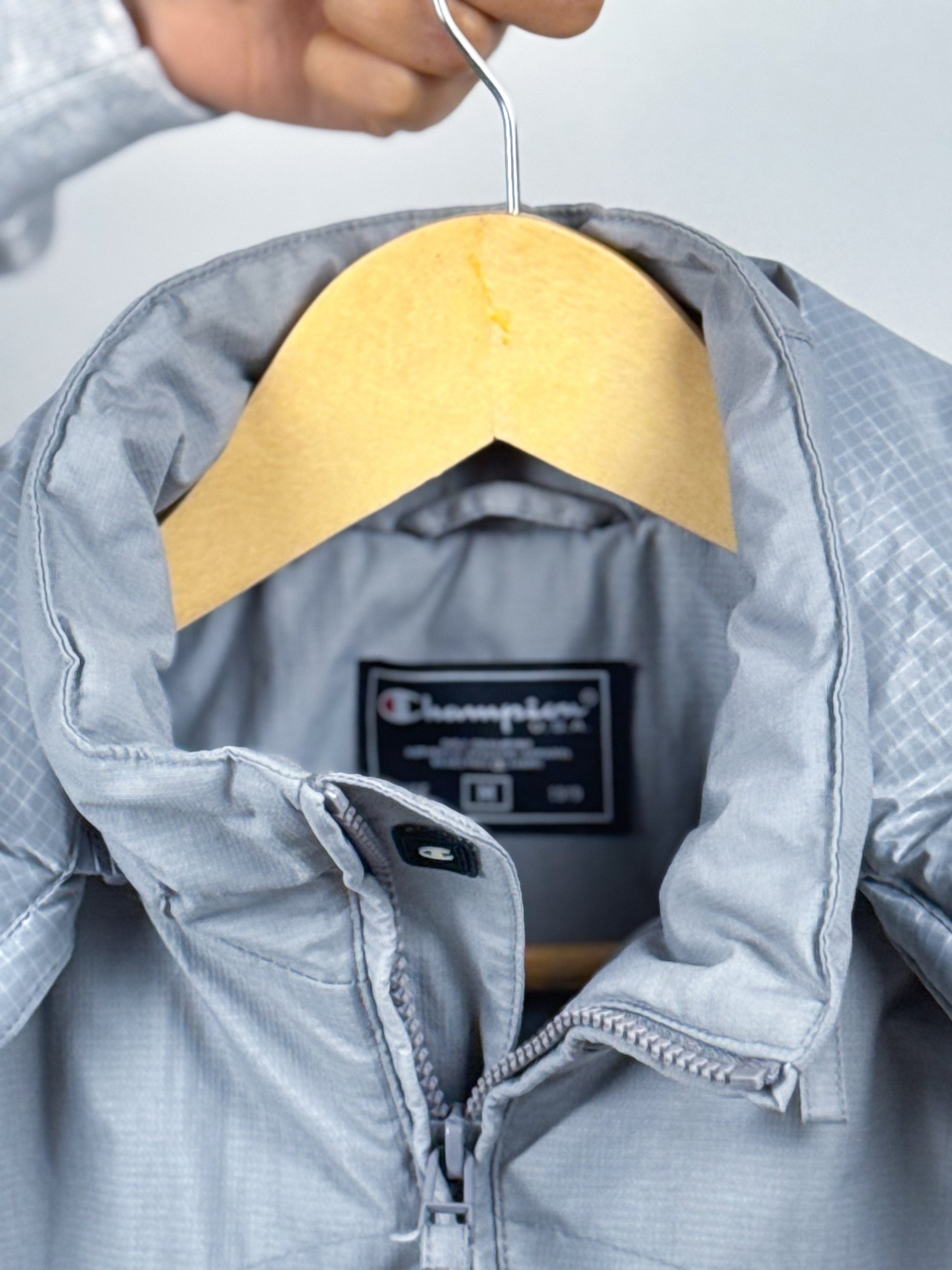 Smanicato originale Champion anni ’90, un must-have per gli amanti dello streetwear e dello stile sportivo vintage. Realizzato in tessuto grigio chiaro imbottito, garantisce comfort e calore senza rinunciare alla leggerezza.