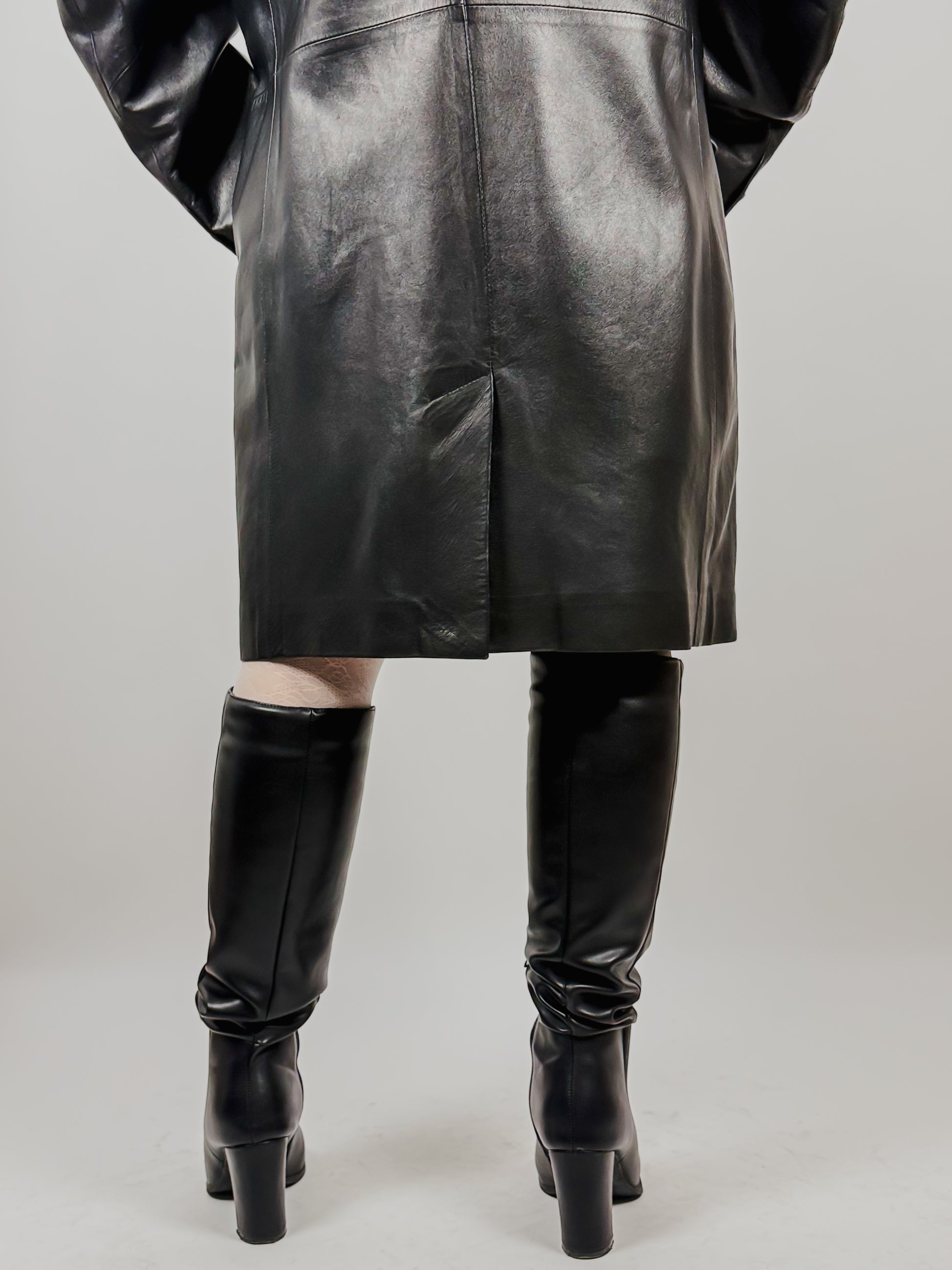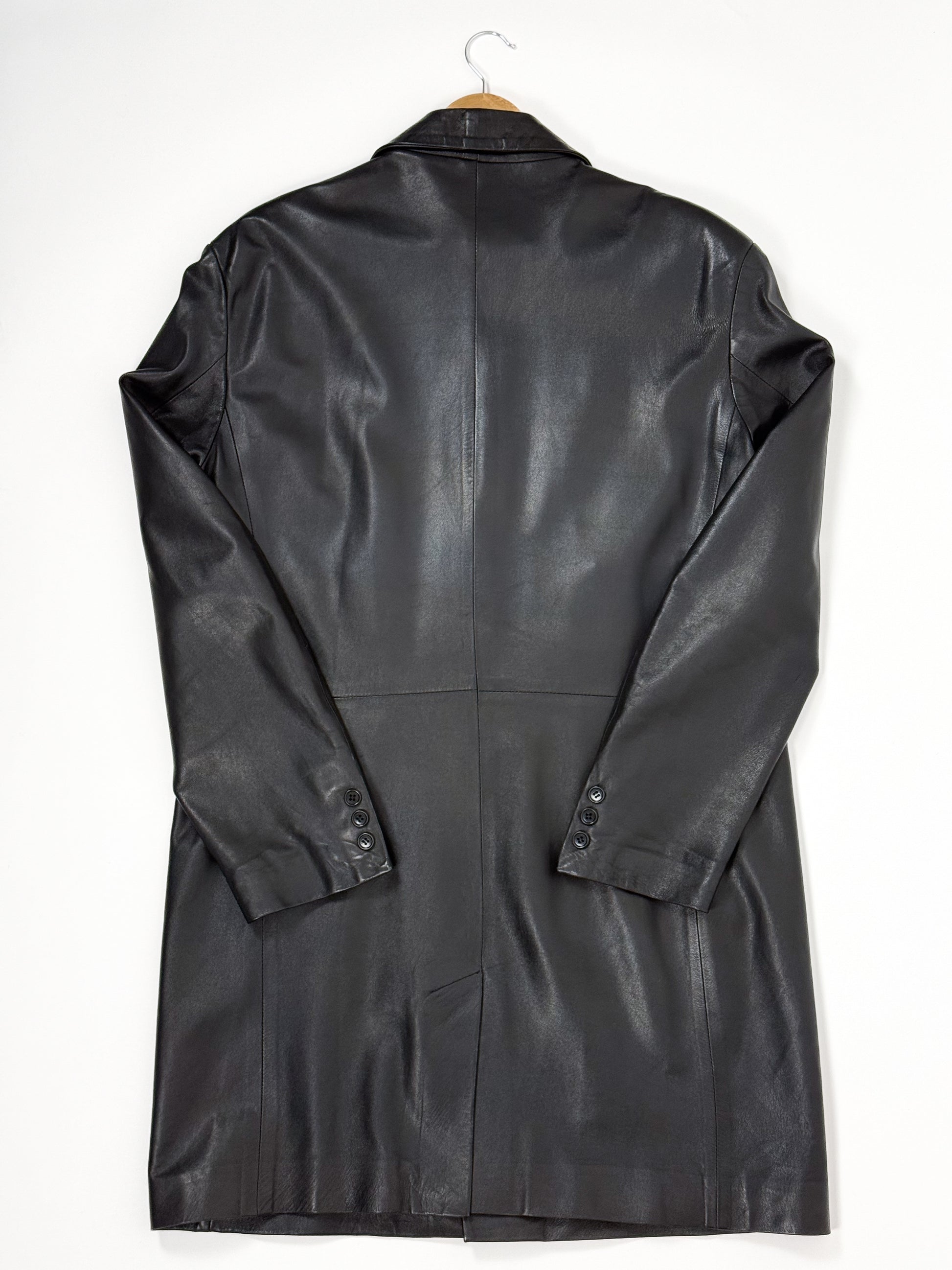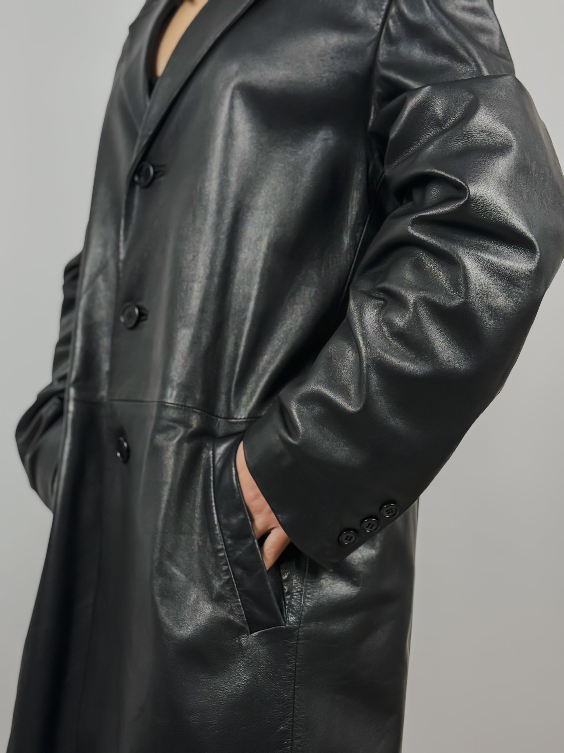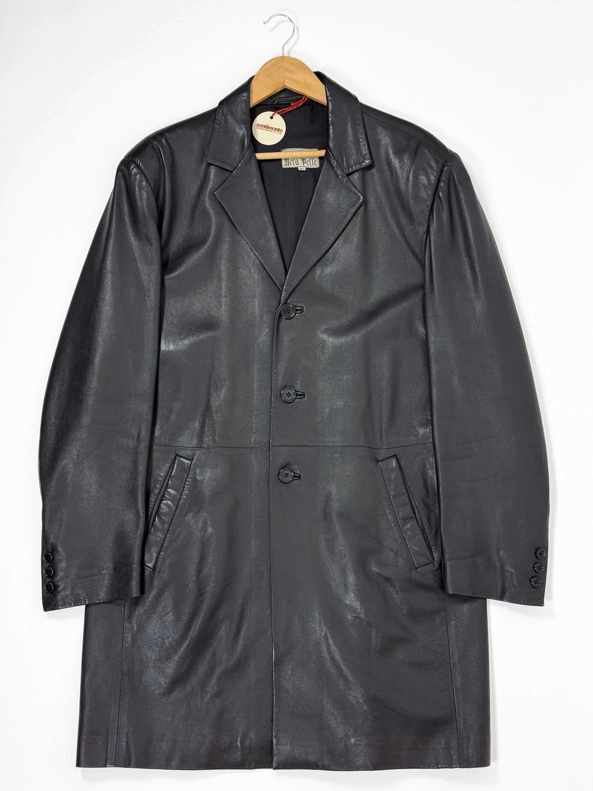 Bellissimo trench in pelle made in Italy, monopetto, con 3 bottoni, due tasche laterali e taschino interno. Spacco posteriore e spalline leggermente imbottite, interamente foderato. La pelle risulta morbidissima.
