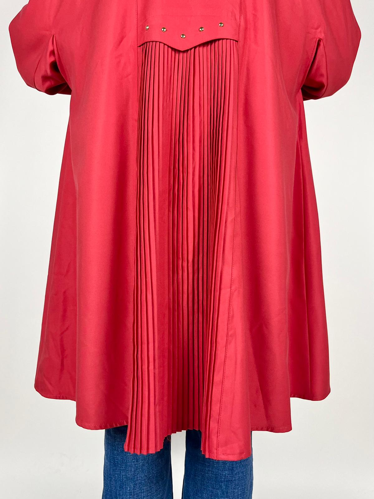 Trench vintage rosso con inserto plissé sul retro – anni ’90